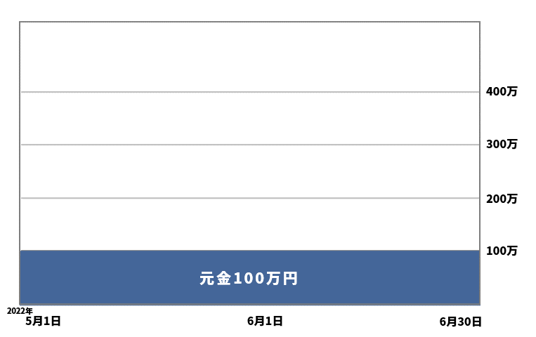 2022年5月1日から6月30日までで100万円が445万4,972円になっています。たった2ヶ月で3,454,972円の利益を出しました。